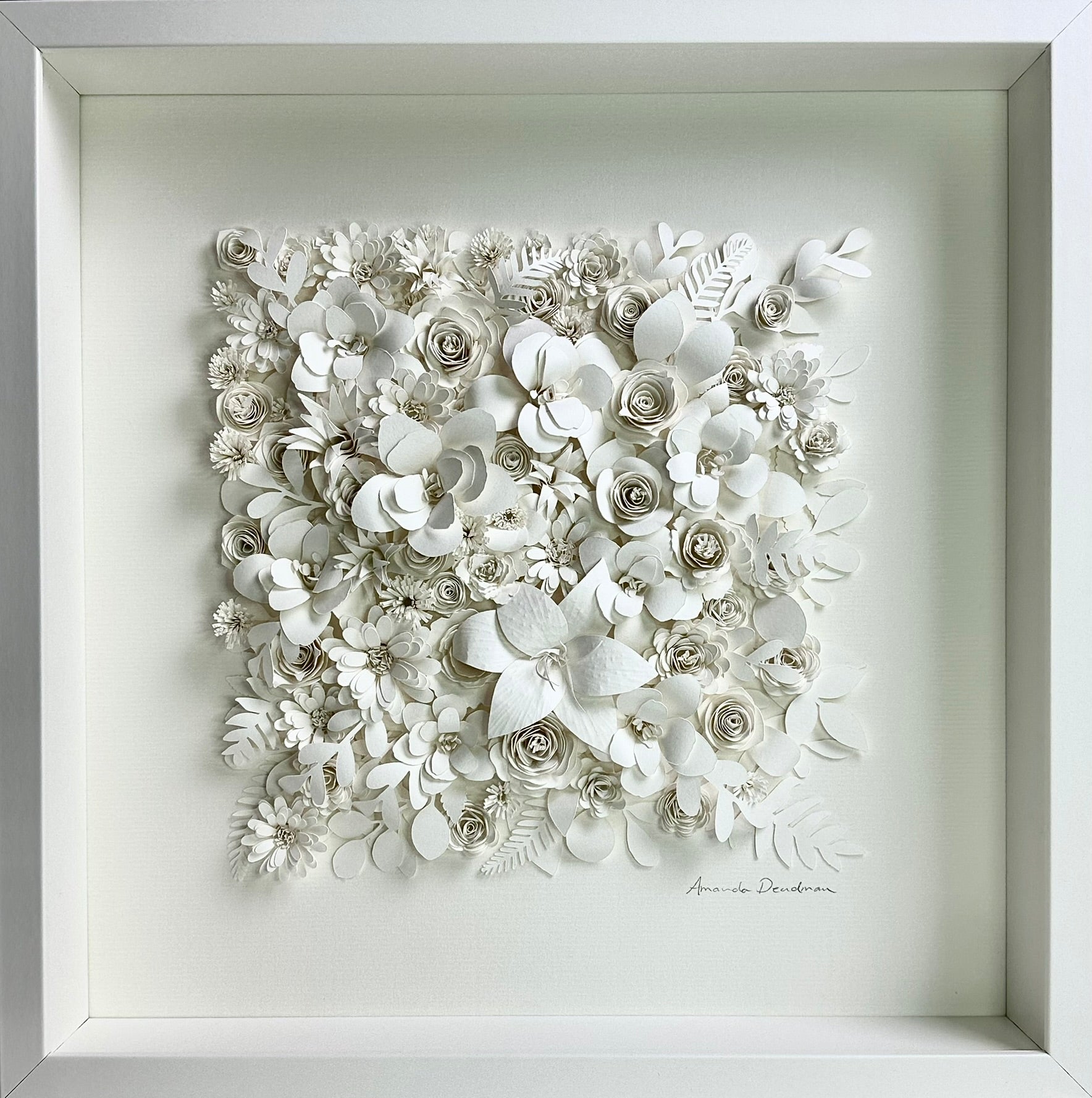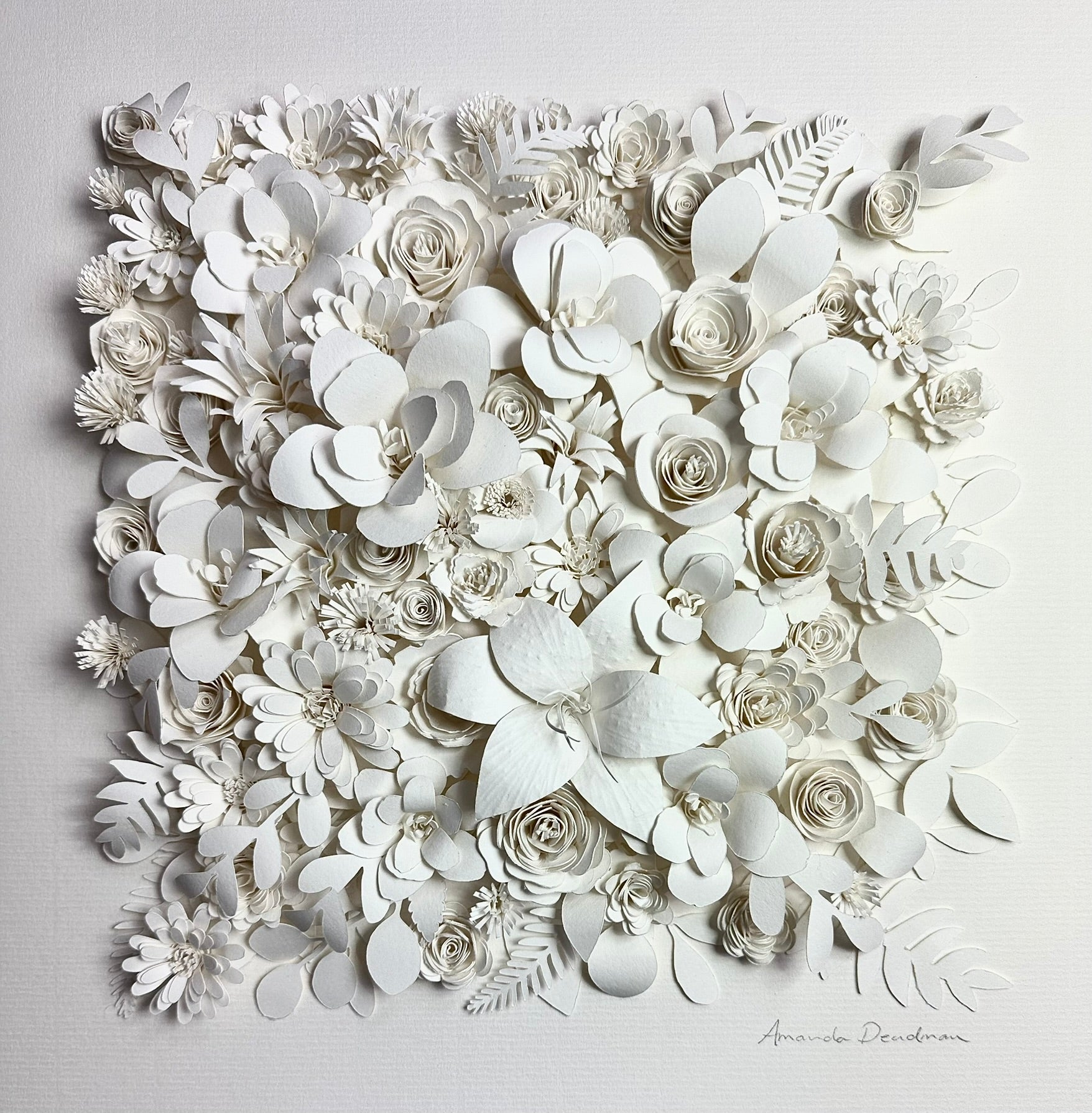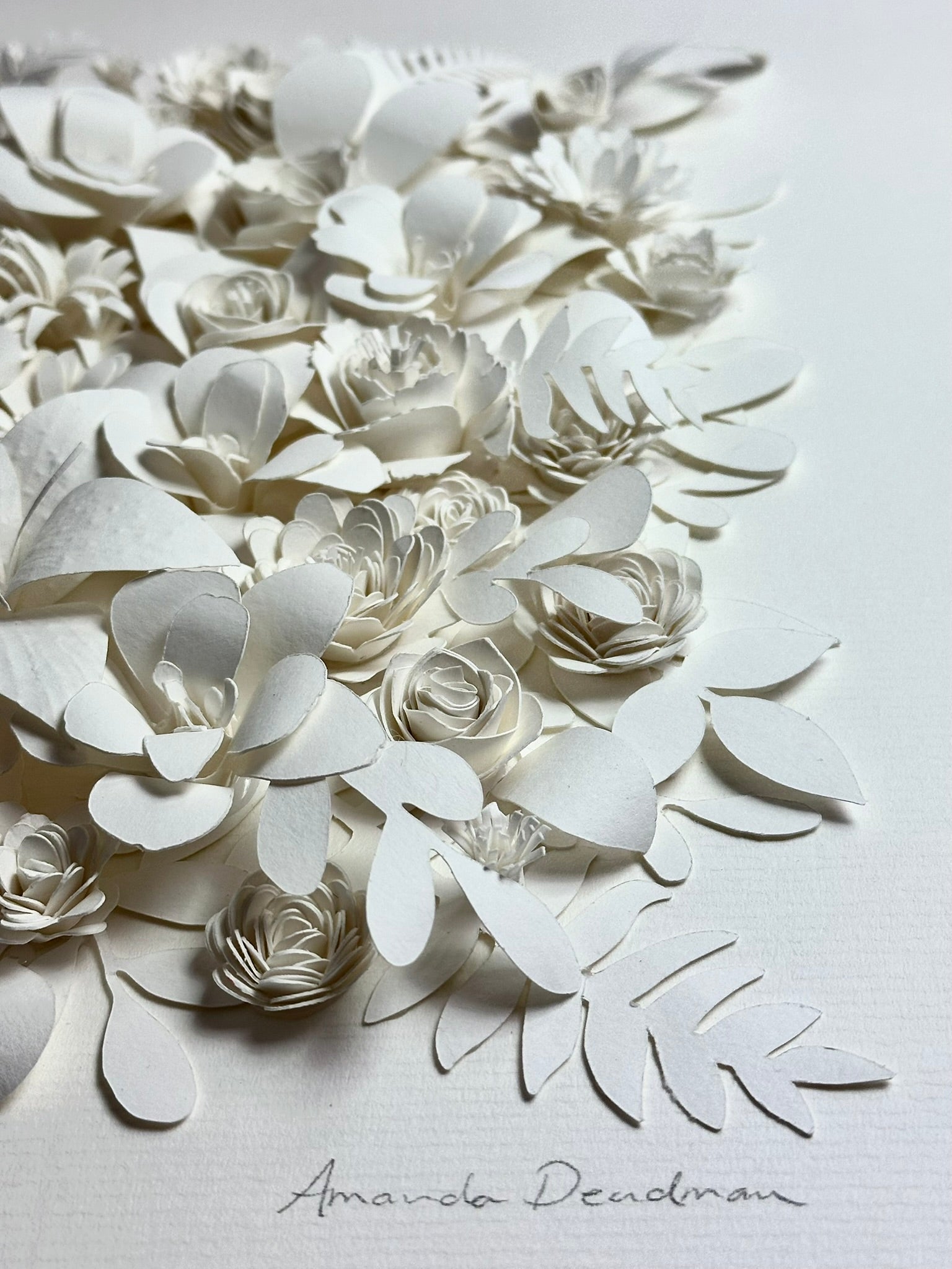 A Summer of Dreams unfolds as a quiet celebration of light, memory and the soft abundance of summer. Composed entirely of hand-cut and delicately shaped watercolour paper, the piece blossoms into a constellation of flowers, each petal formed with patience and intention.