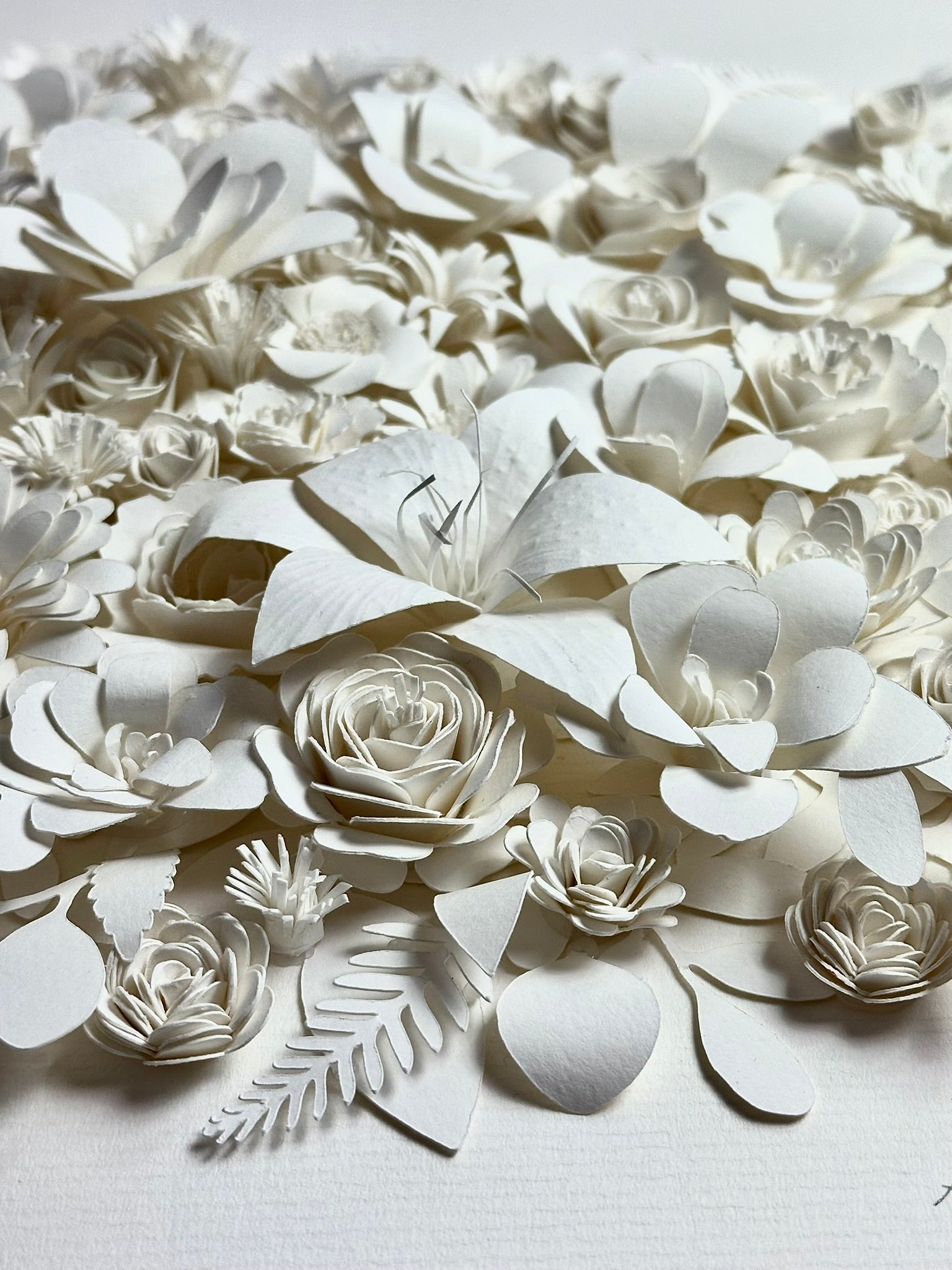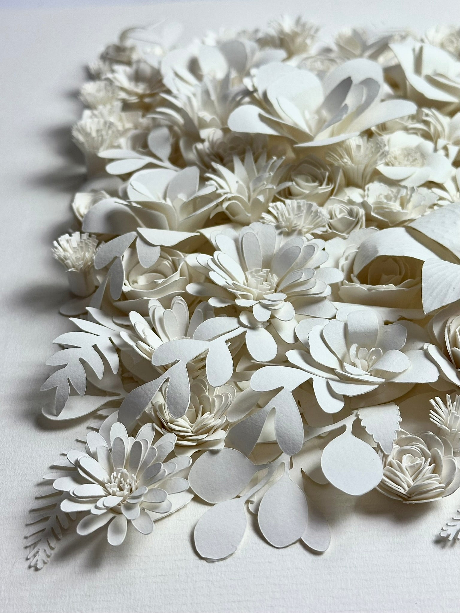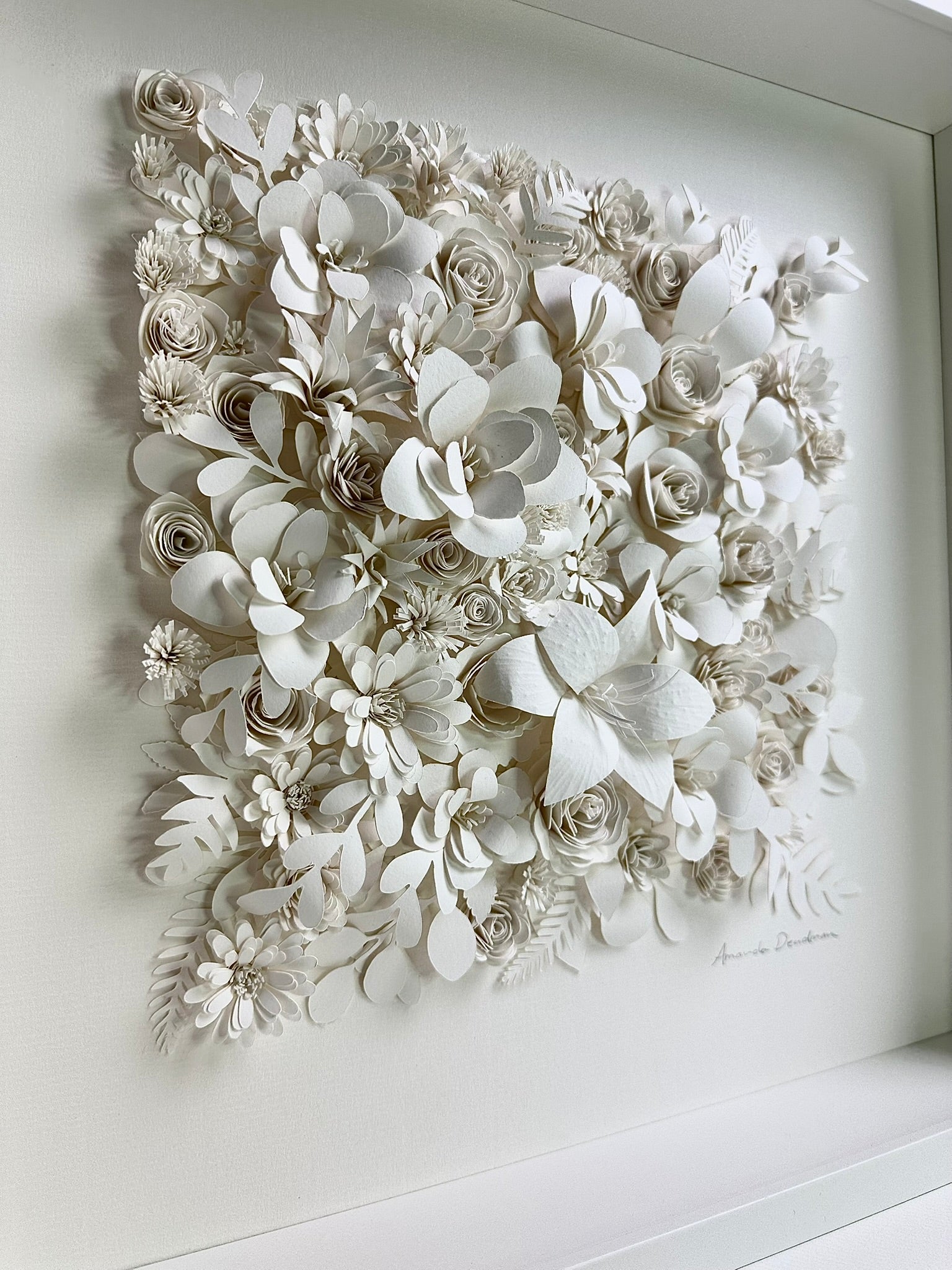 A Summer of Dreams unfolds as a quiet celebration of light, memory and the soft abundance of summer. Composed entirely of hand-cut and delicately shaped watercolour paper, the piece blossoms into a constellation of flowers, each petal formed with patience and intention.