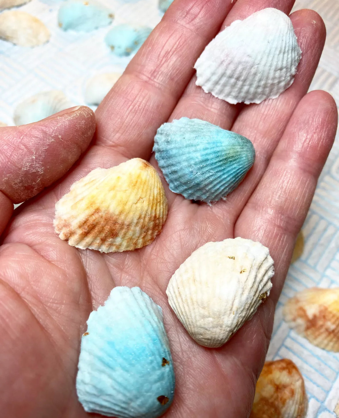 Each shell is meticulously formed using papier-mâché, then delicately coloured with watercolours to capture their natural beauty.