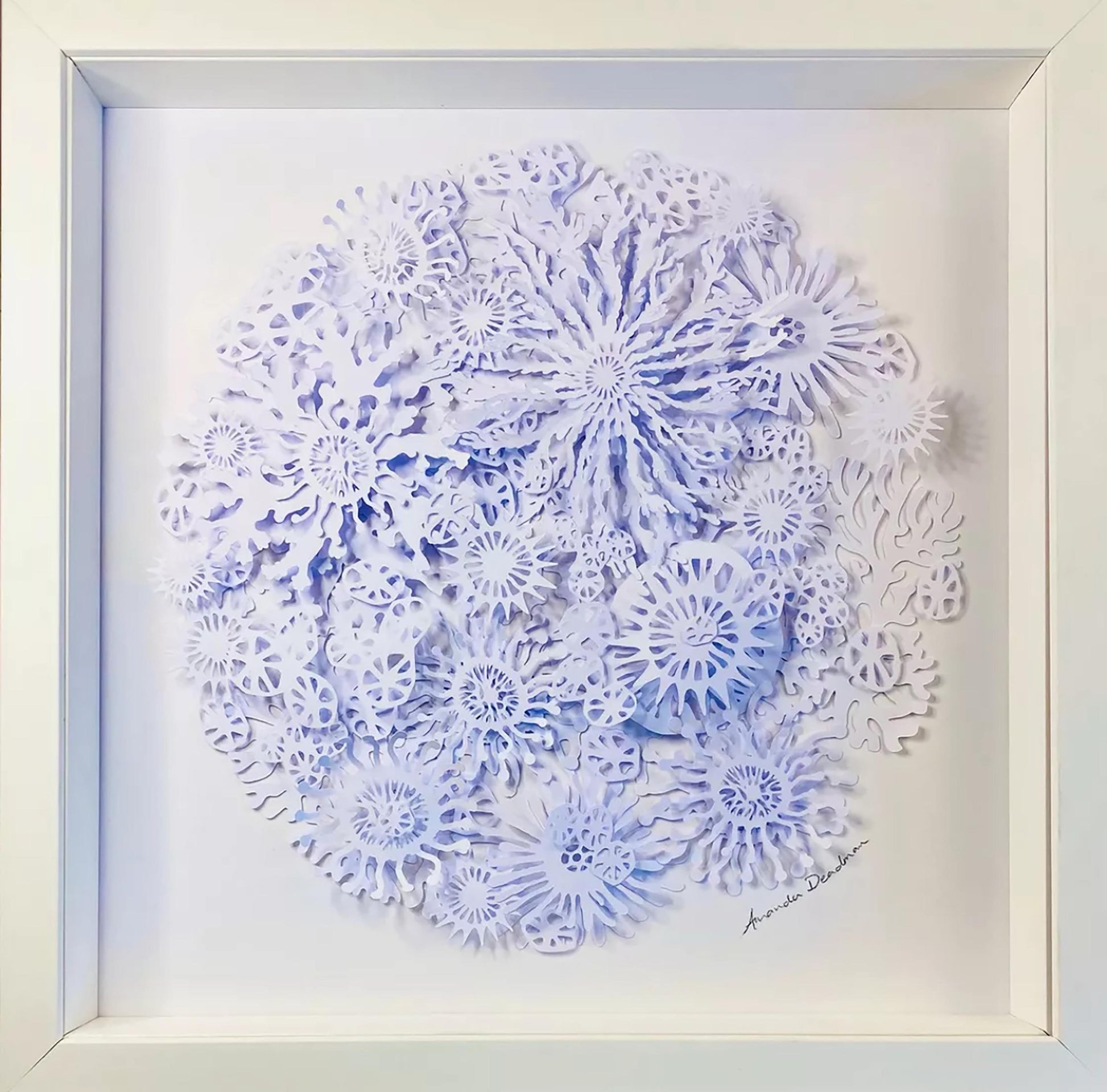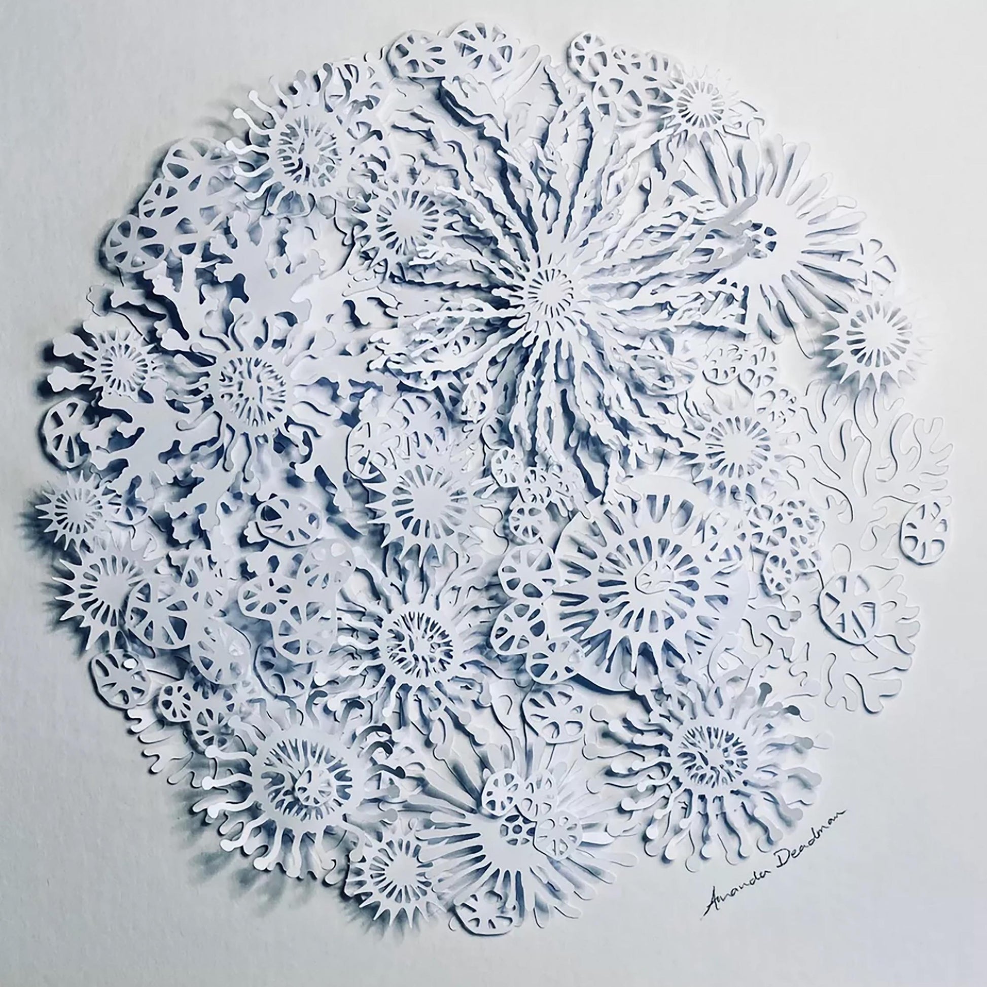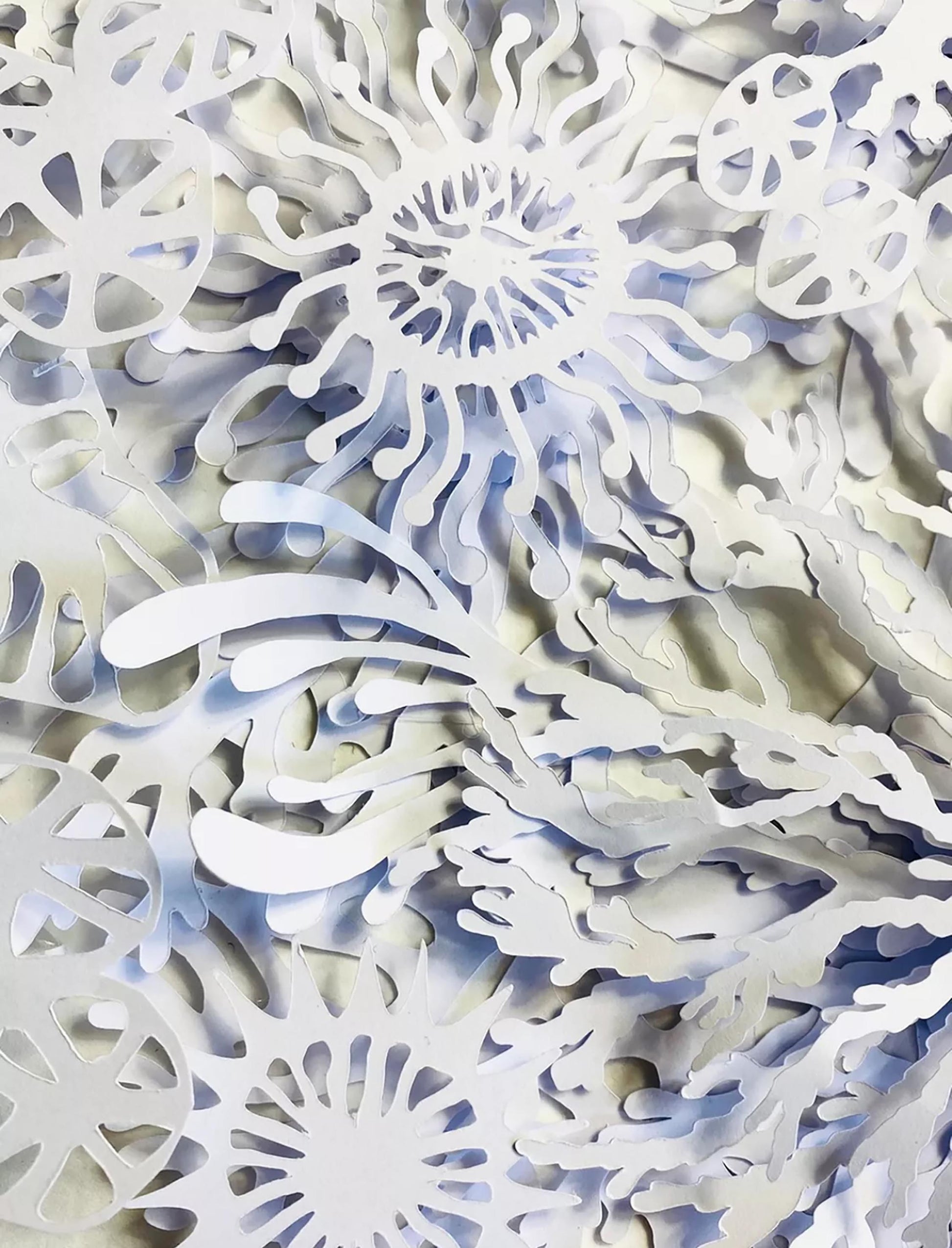 The result is a striking white dimensional relief design revealing individual coral, plant and plankton like shapes on closer inspection, and casting interesting shadows depending on the direction of the light.