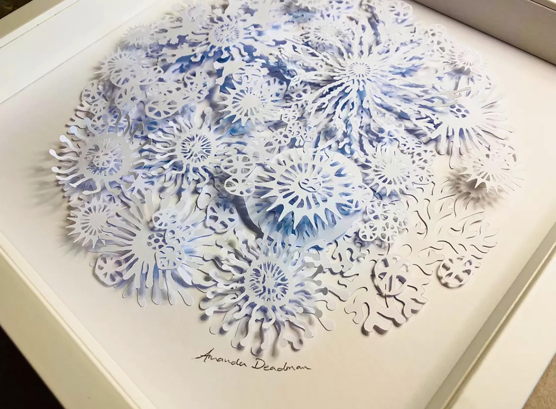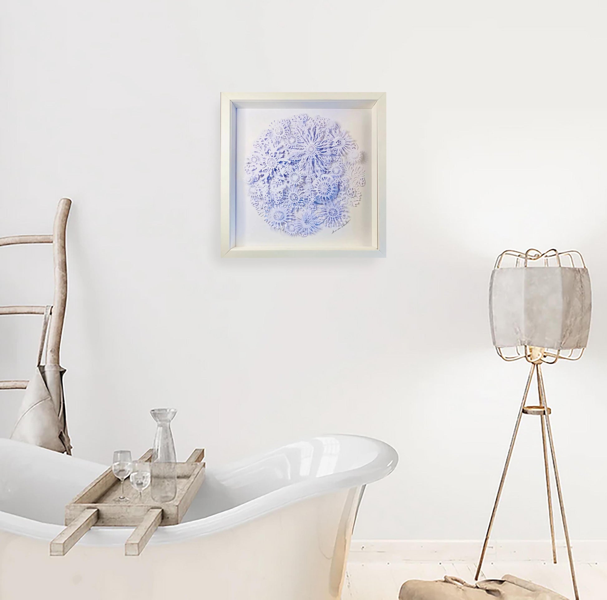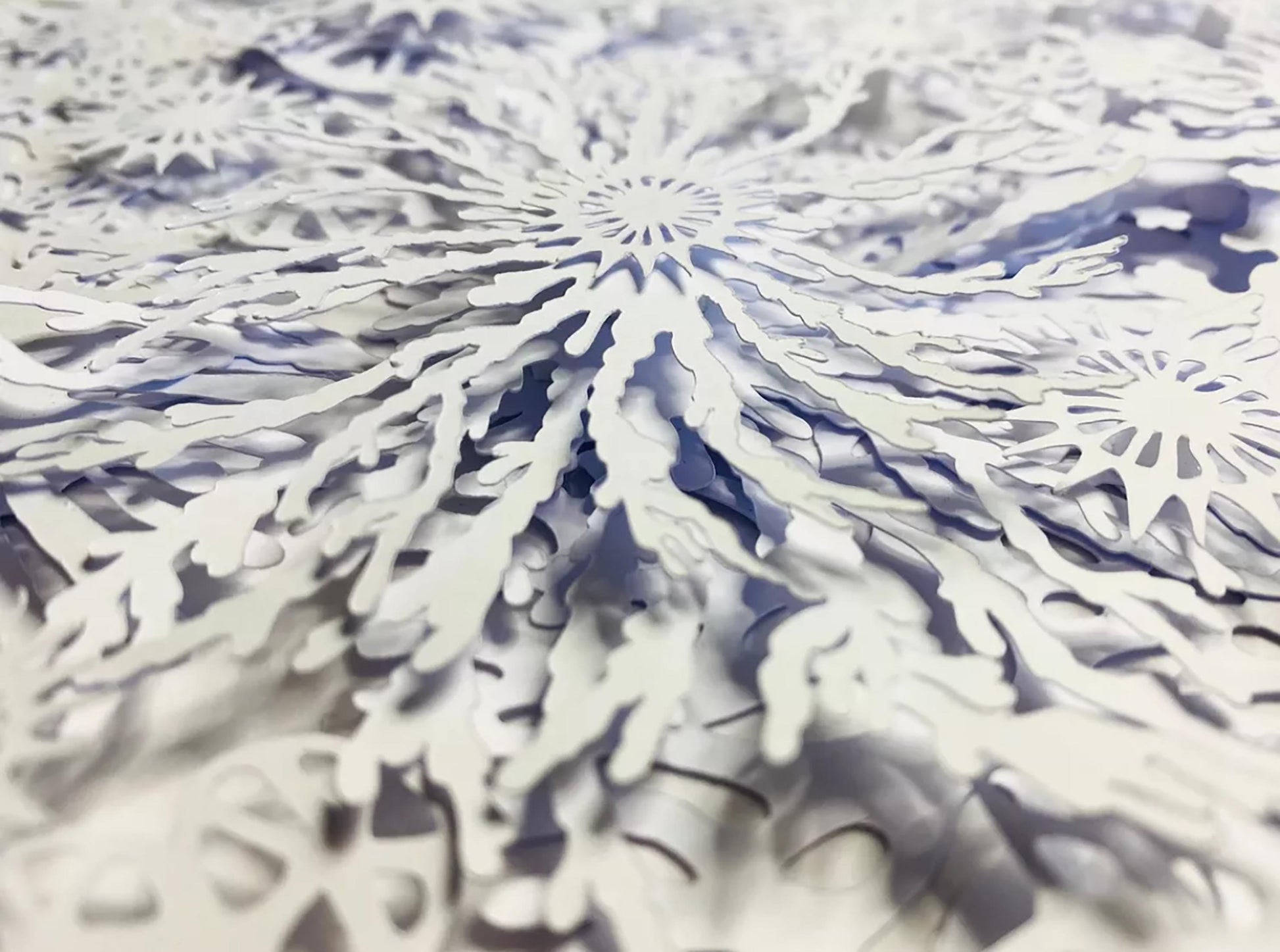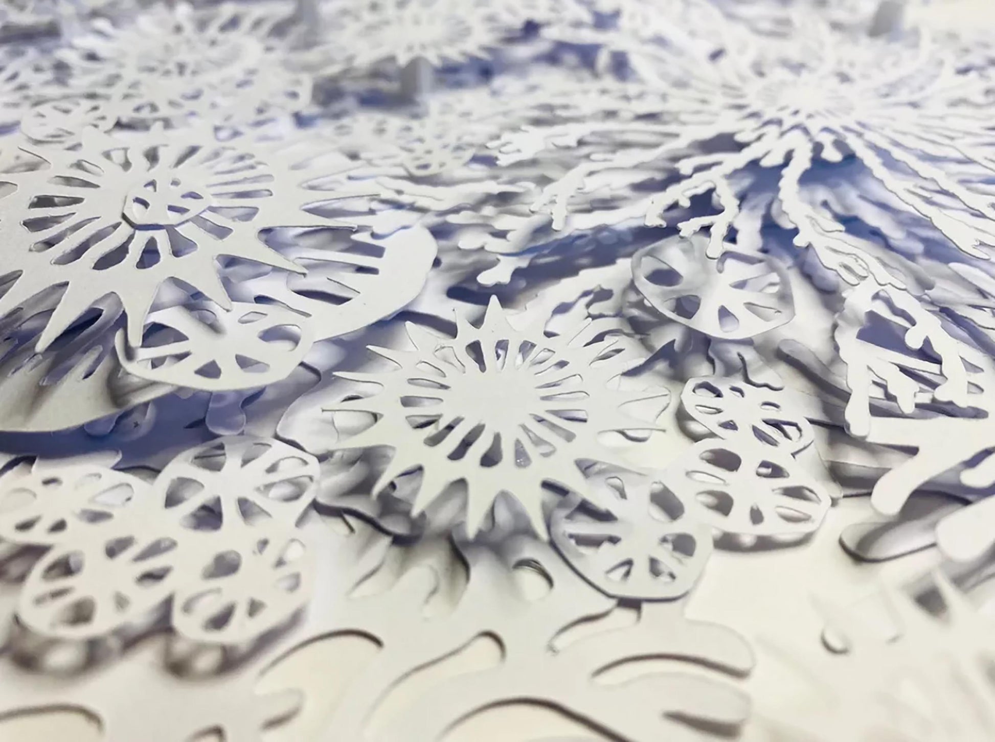 The result is a striking white dimensional relief design revealing individual coral, plant and plankton like shapes on closer inspection, and casting interesting shadows depending on the direction of the light.