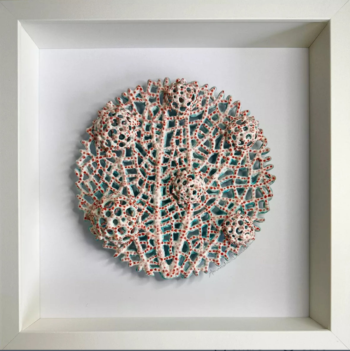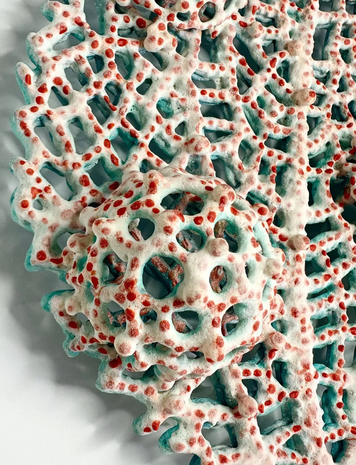 "Matrix Atoll" is the third piece in my enchanting “Atoll” series — a sculptural relief that draws inspiration from the mesmerizing shapes and vibrant colours of corals and their intricate cells.